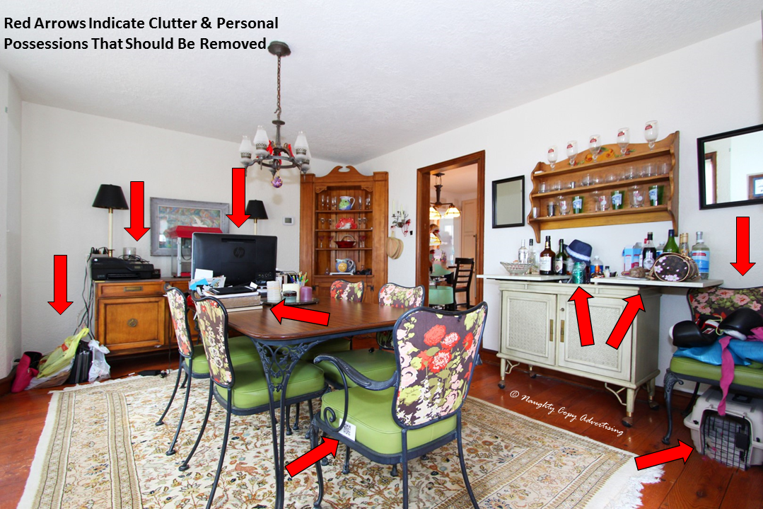 Red Arrows Indicate Clutter & Personal Items That Should Be Removed